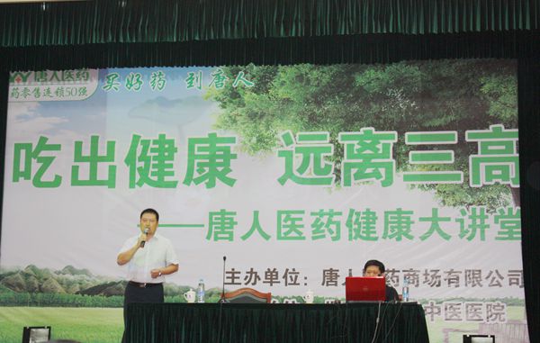 6月23日公司高薪聘请了北京弘一堂首席专家陈明教授来唐为会员进行健康讲座。陈明,医学博士、北京中医药大学教授、博士研究生导师。中华中医药学会仲景学说委员会副主任委员兼秘书长;中华中医药学会首席健康科普专家。此次讲座的主要内容:从中医角度分析三高人群的形成因素和生活中的改善方法和注意事项。近三百名会员参加了此次讲座,这些会员均是高血压,高血脂,脂肪肝,心脑血管疾病,糖尿病等慢性疾病患者,在讲座中大家都很珍惜这难得的机会,均仔细听讲认真记录笔记。讲座结束后很多会员还找到工作人员要陈明教授讲解的课件,这让我们又一次看到了收货,随着会员们日益增长的保健意识,我们肩上的责任也日益加重,在未来的工作中,我们会继续丰富讲座内容,聘请知名专家,同时也希望全体员工理解公司的良苦用心及经济付出,在讲座前积极做好宣传活动,让更多的会员参与到唐人医药健康大讲堂中。