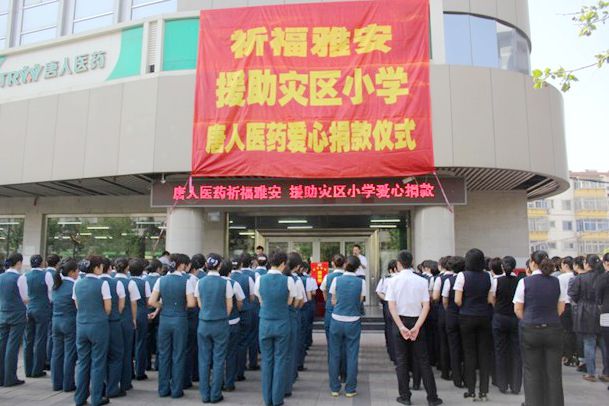 四川雅安地震发生以后,灾区人民的生活一直牵动着唐人医药所有员工的心。为帮助灾区人民度过难关,重建家园,2013年5月16日上午,唐人医药领导及员工代表在港城店门前举行了隆重的为灾区人民捐款活动。上午9时,唐人医药领导及员工代表齐集港城店门前空地。